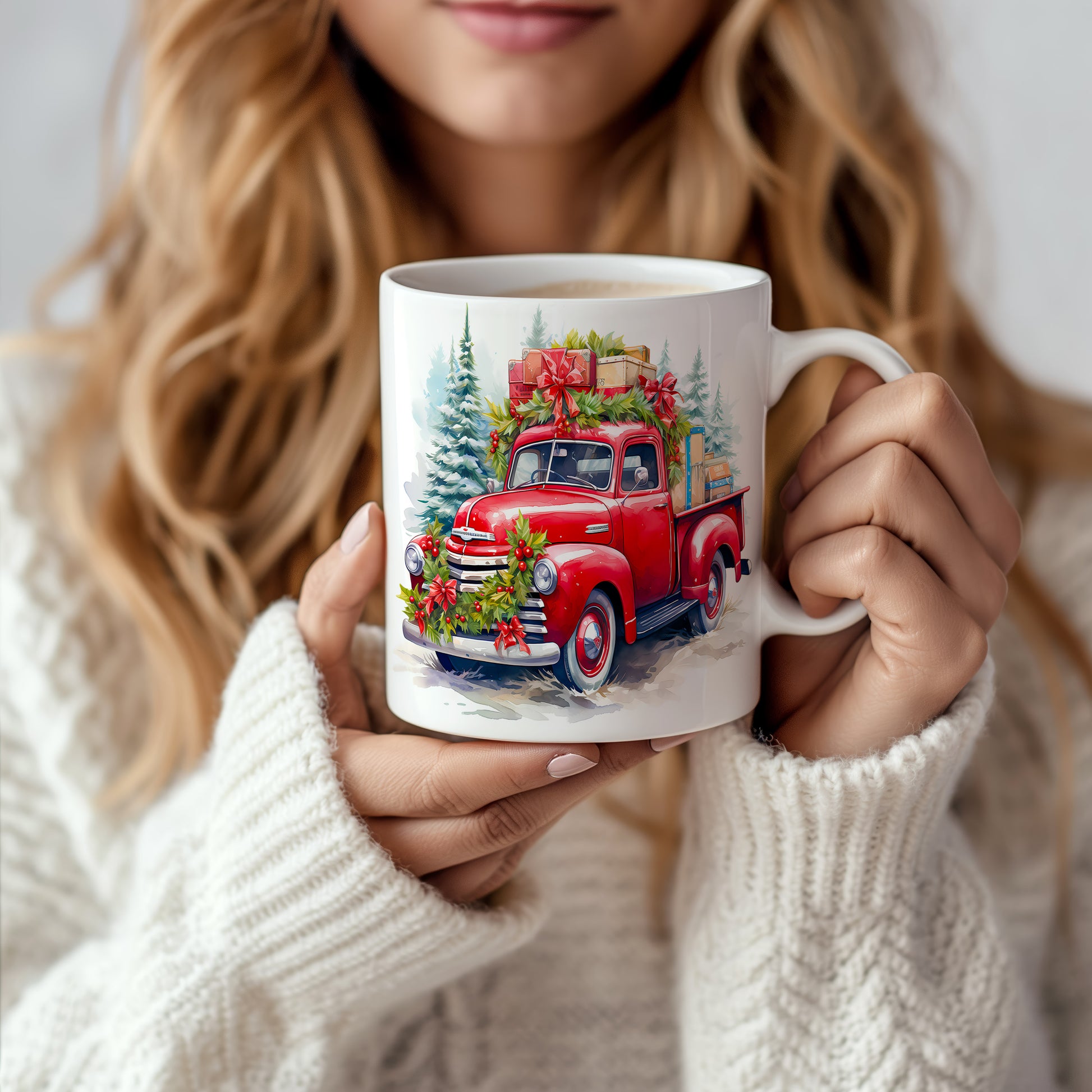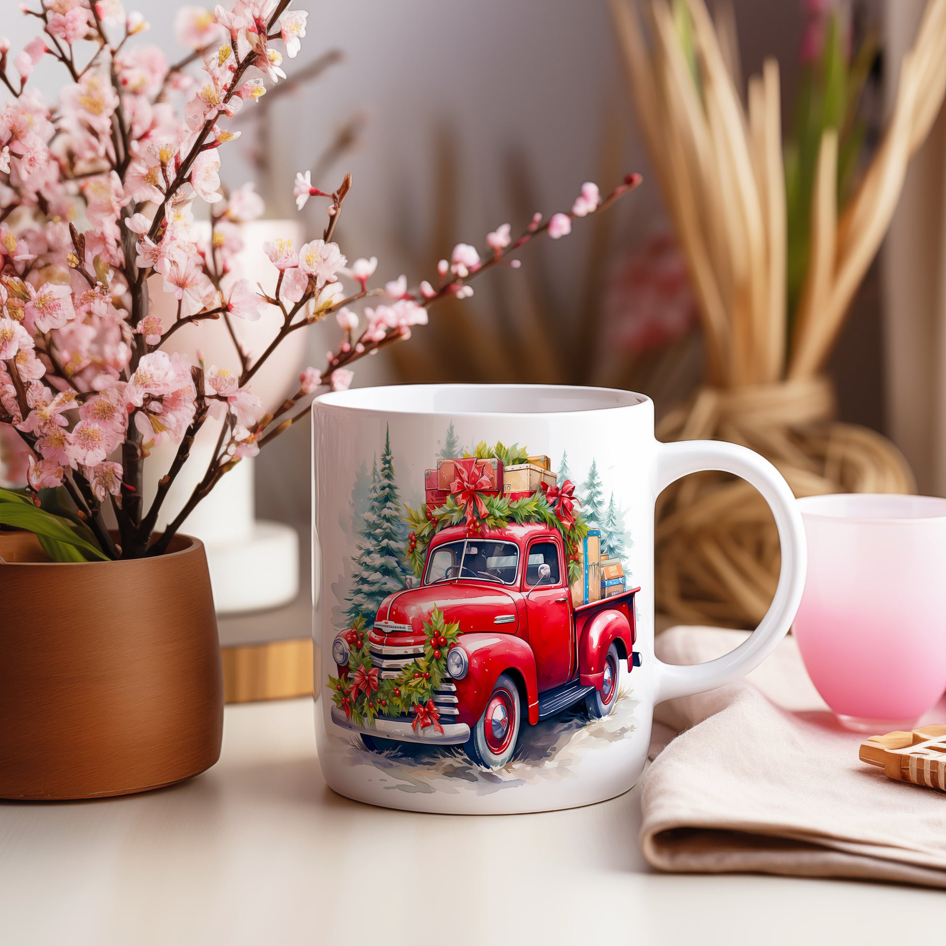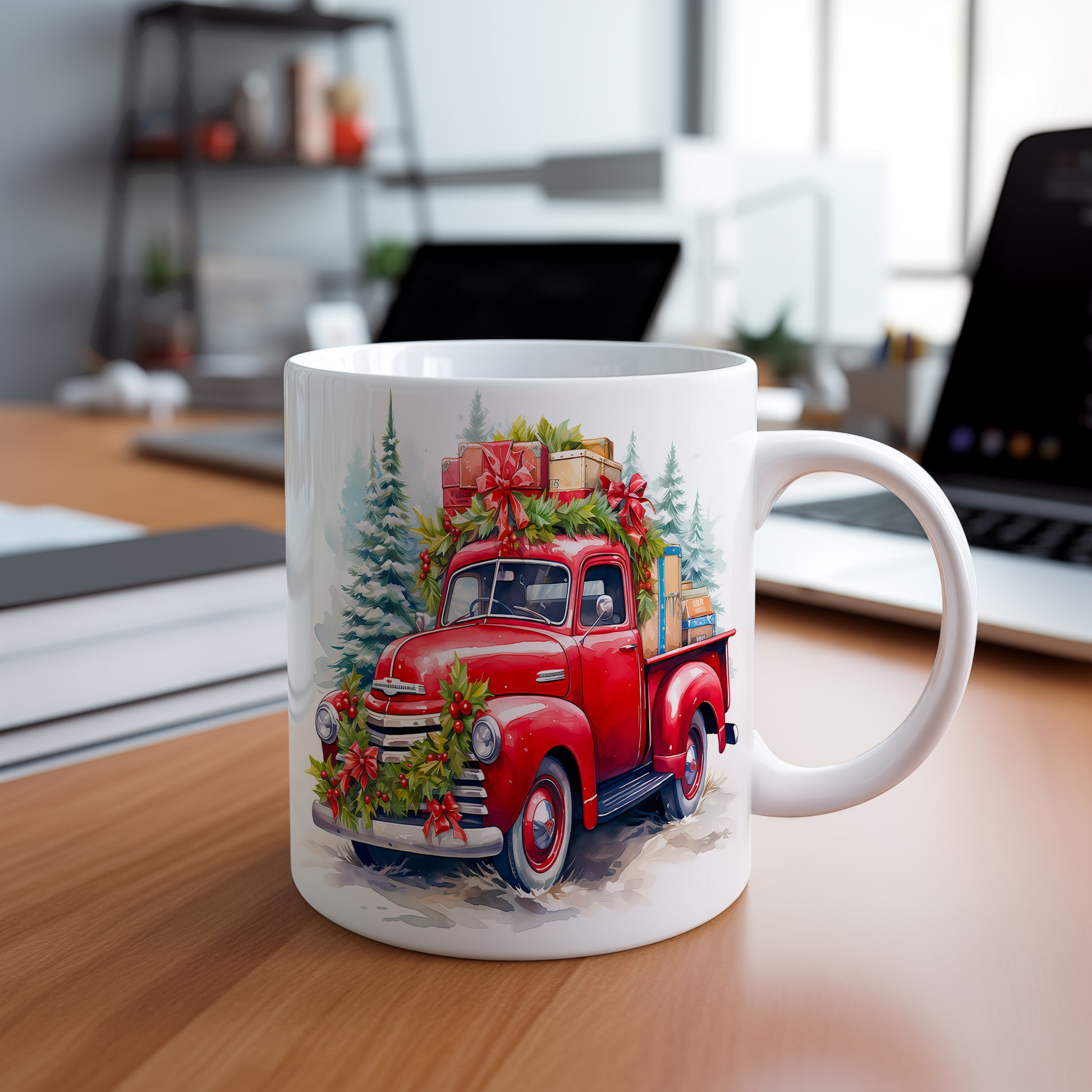 Vánoční hrnek s retro náklaďákem