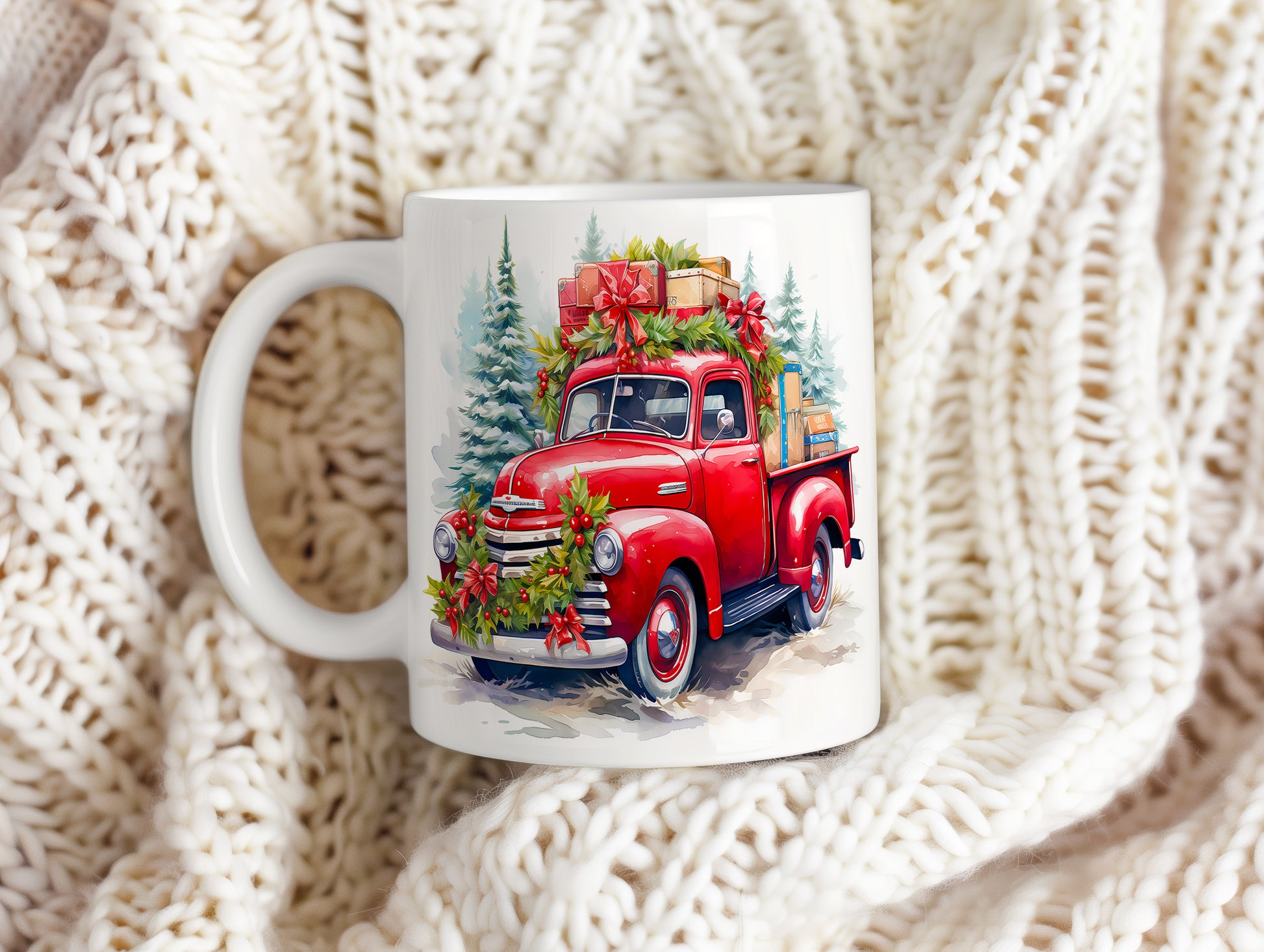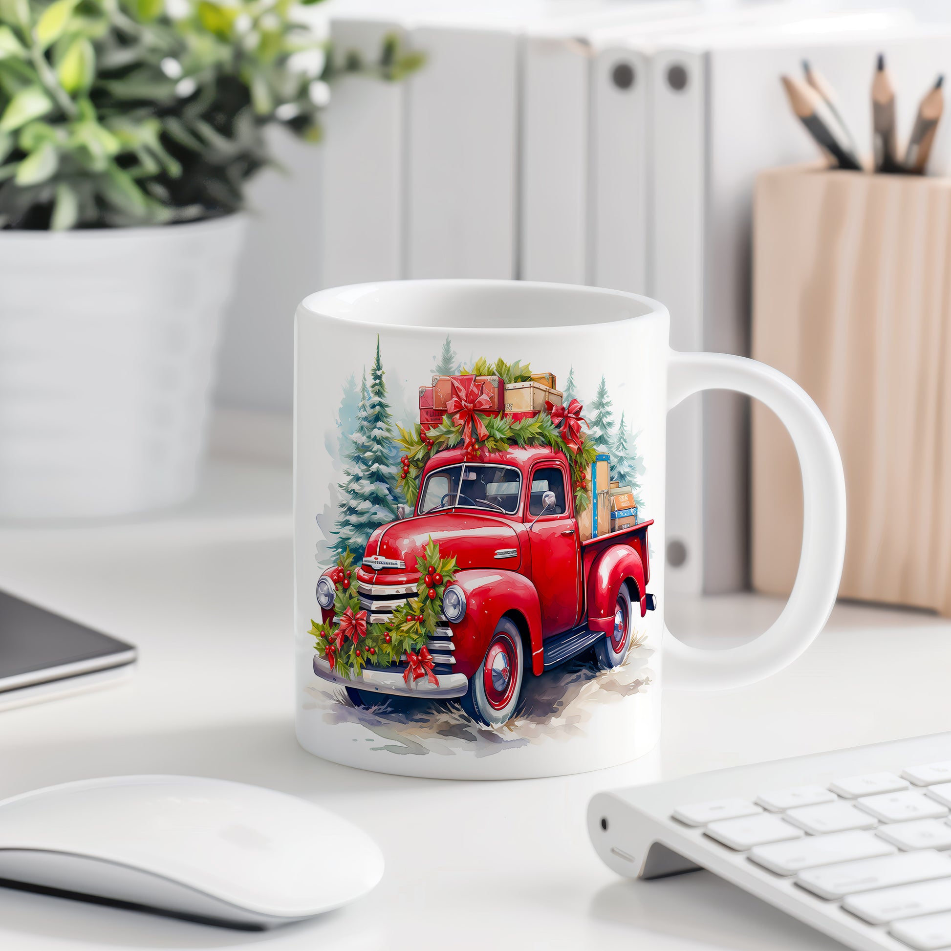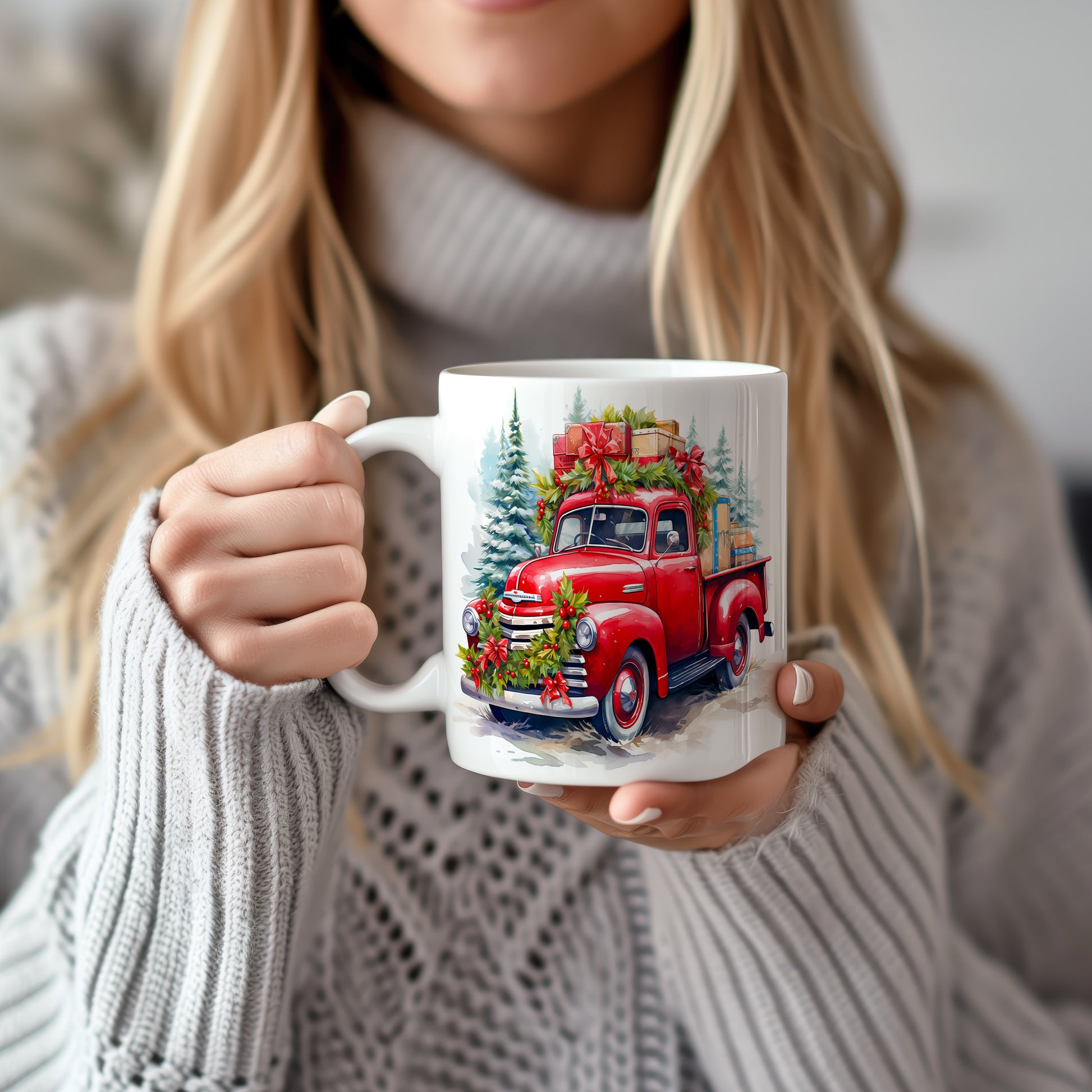 Vánoční hrnek s retro náklaďákem