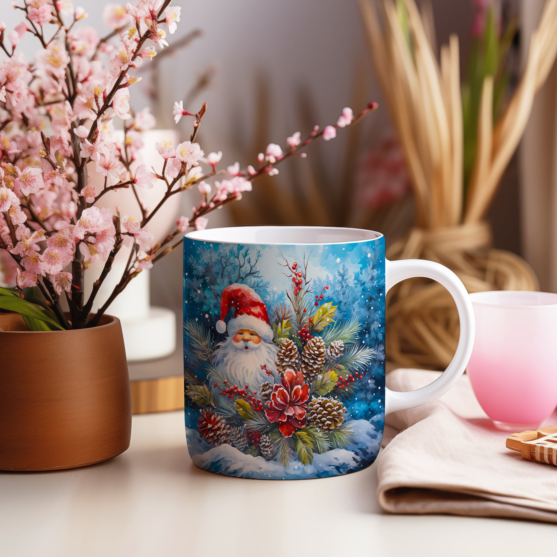 Vánoční hrnek se Santou Clausem a šiškami