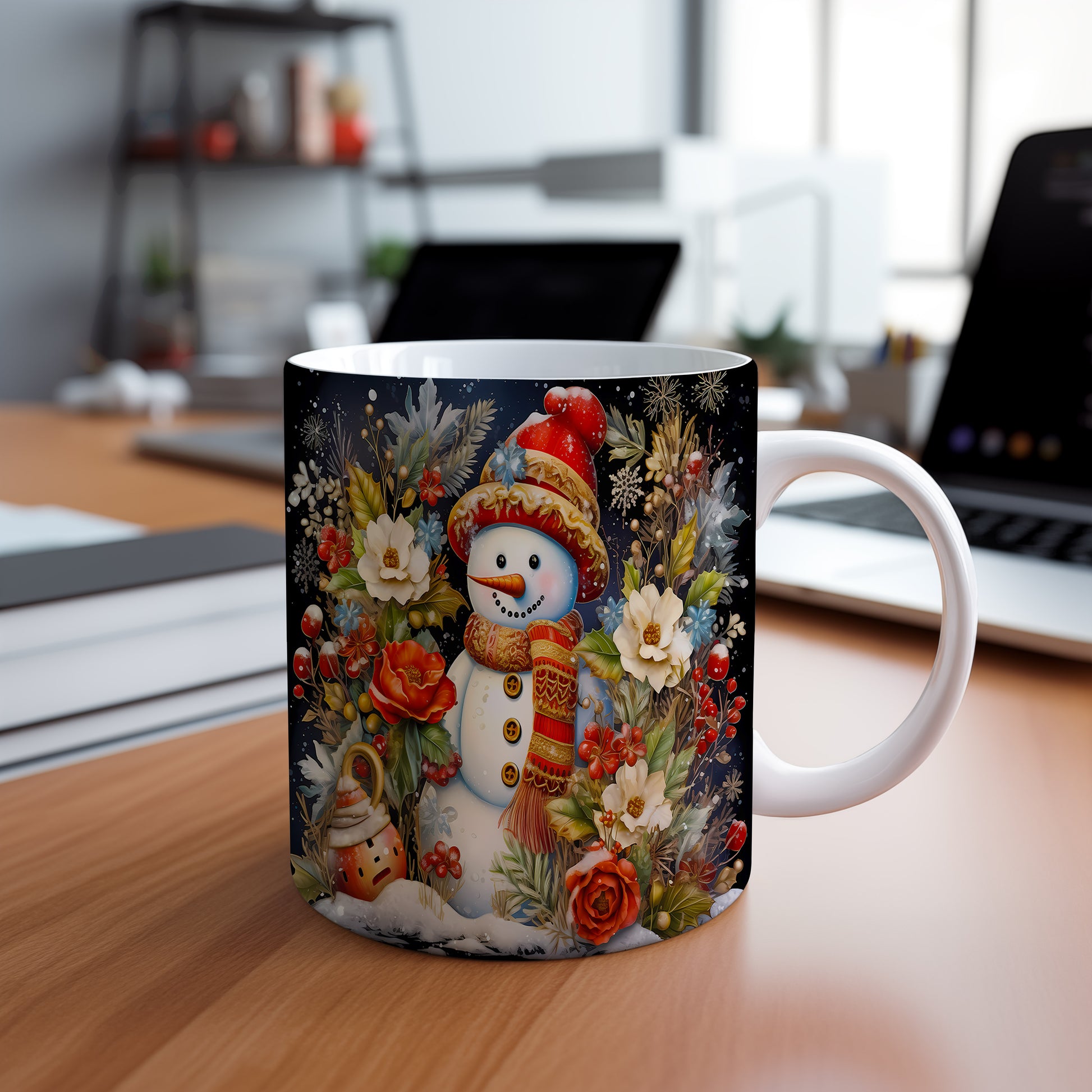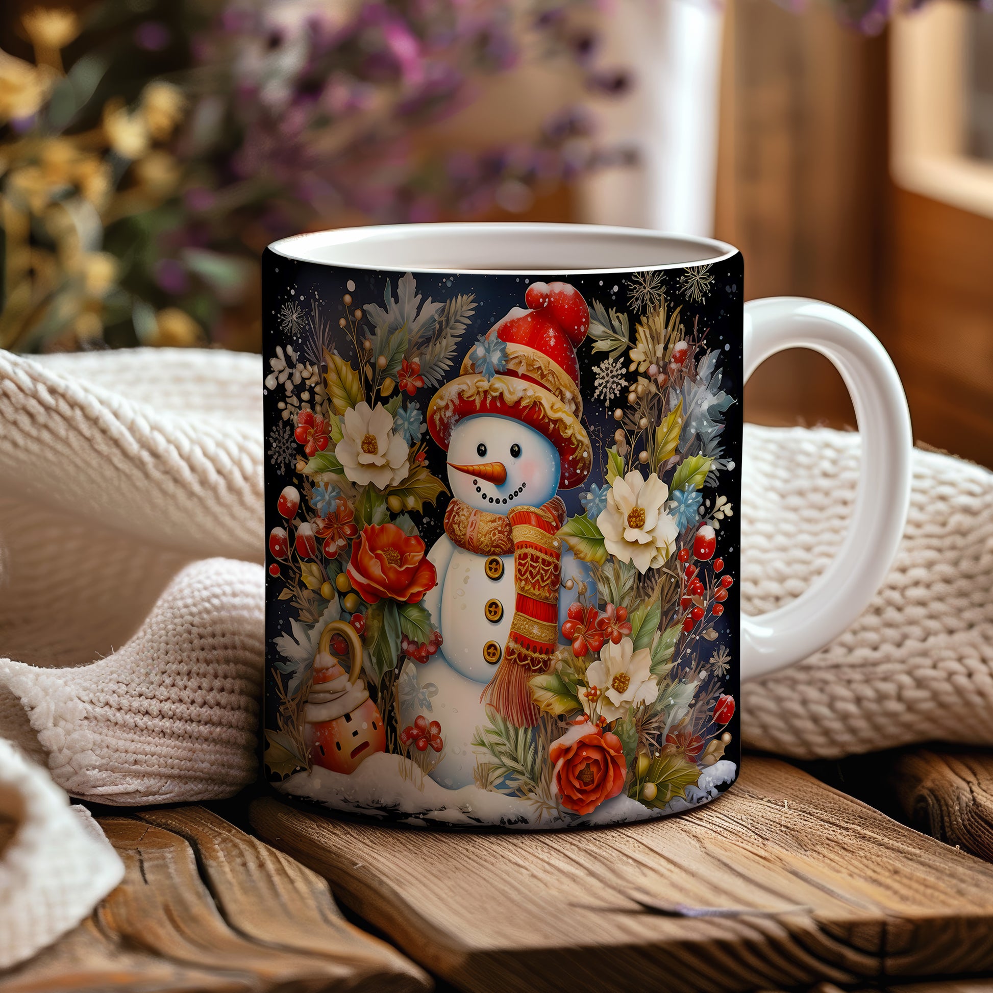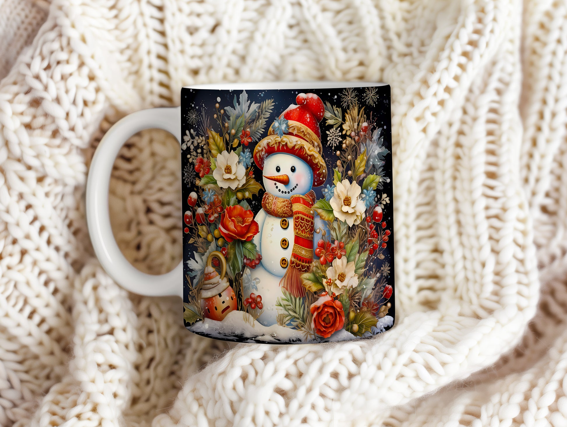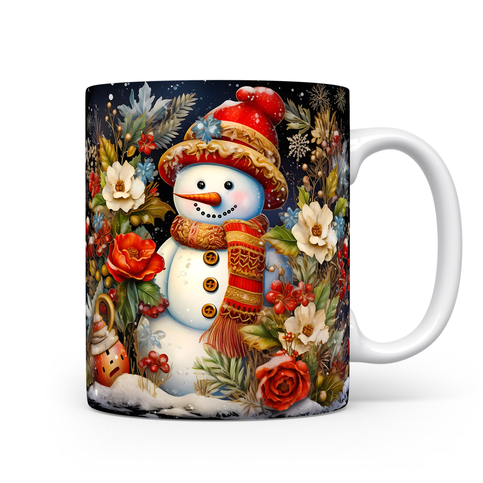 Vánoční hrnek se Sněhulákem a květinami – klasická edice