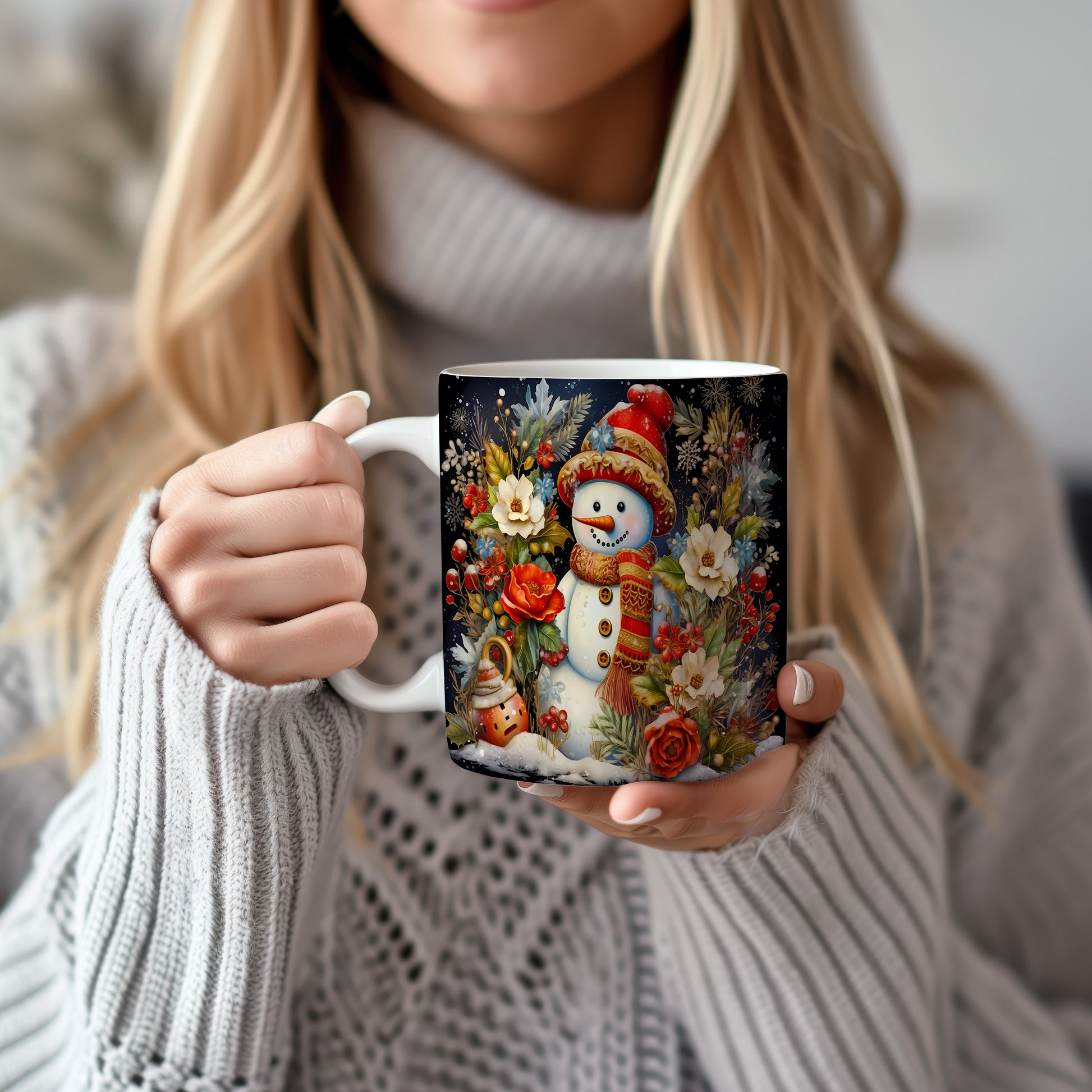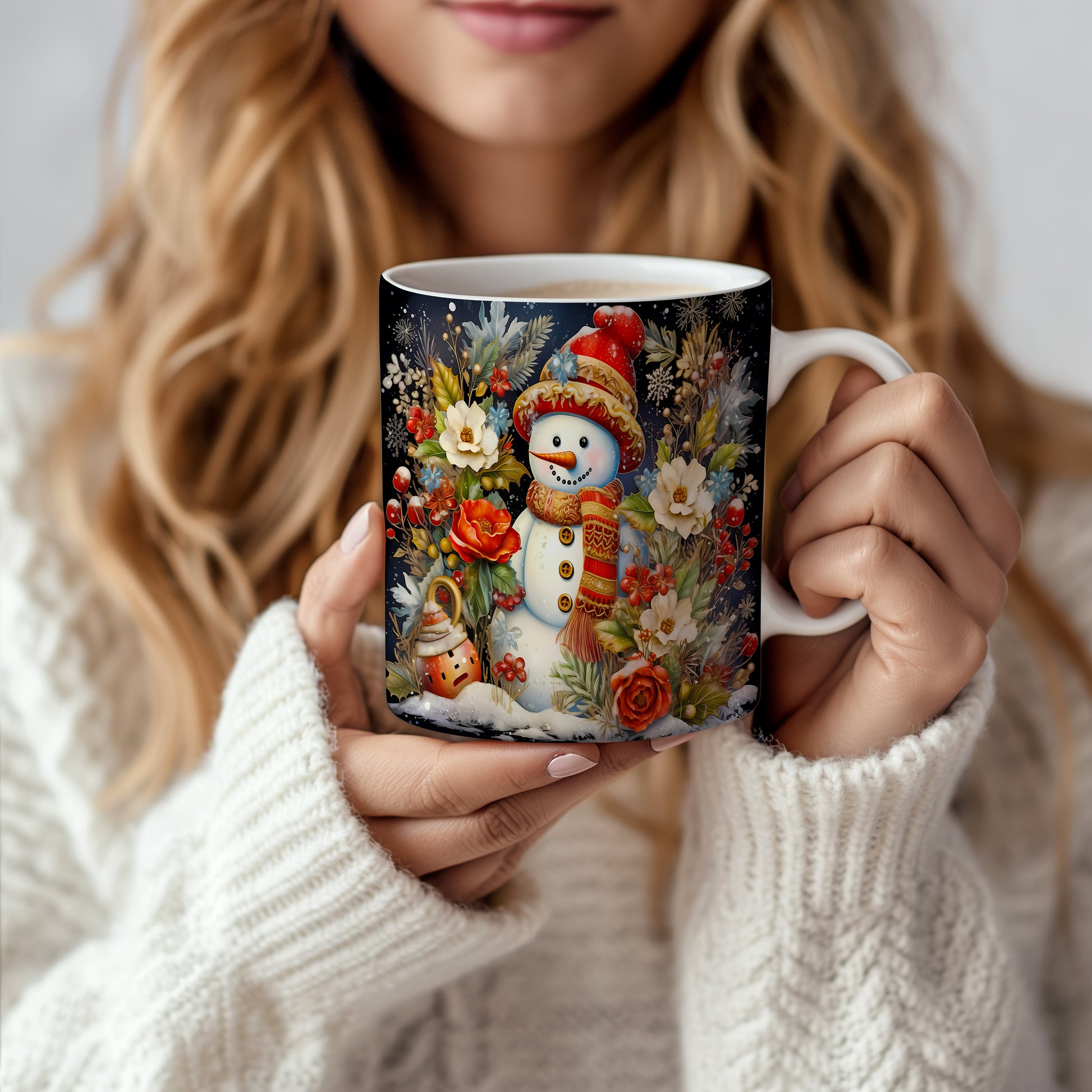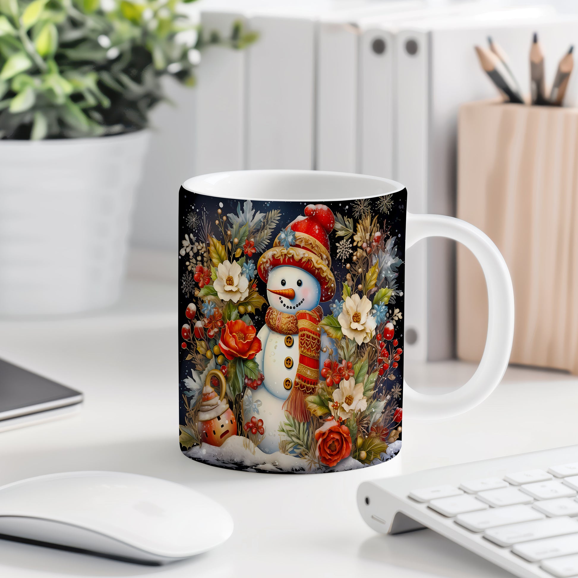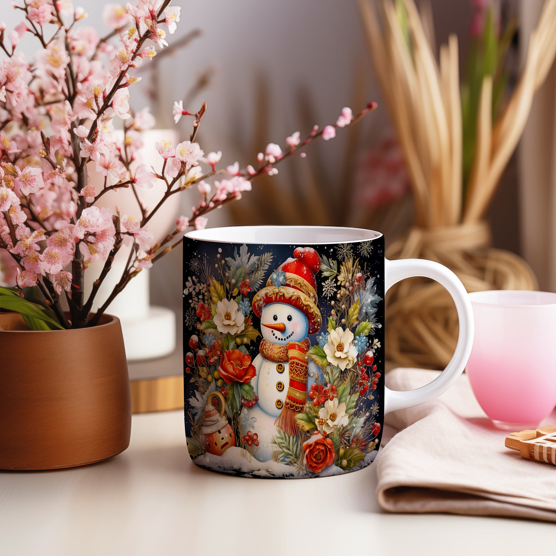 Vánoční hrnek se Sněhulákem a květinami – klasická edice