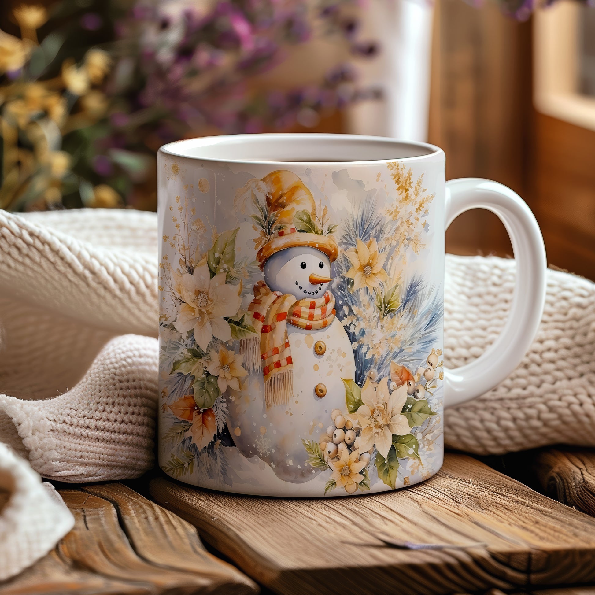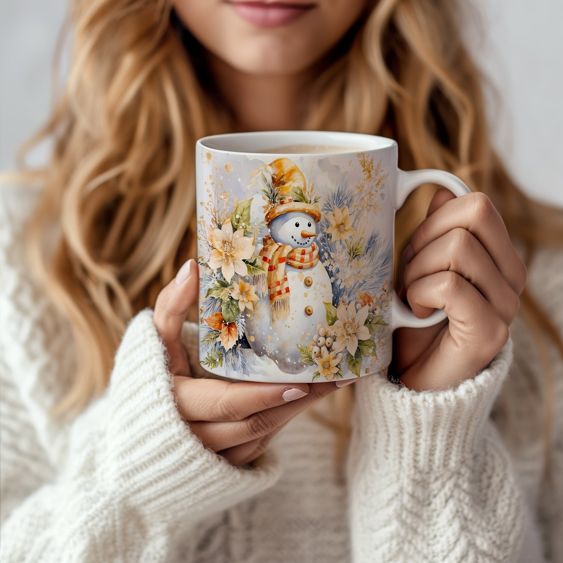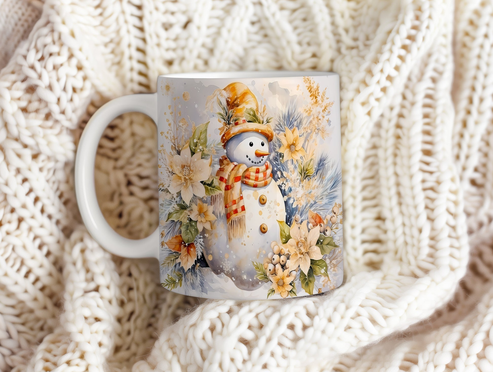 Vánoční hrnek se Sněhulákem a šálou – zimní edice