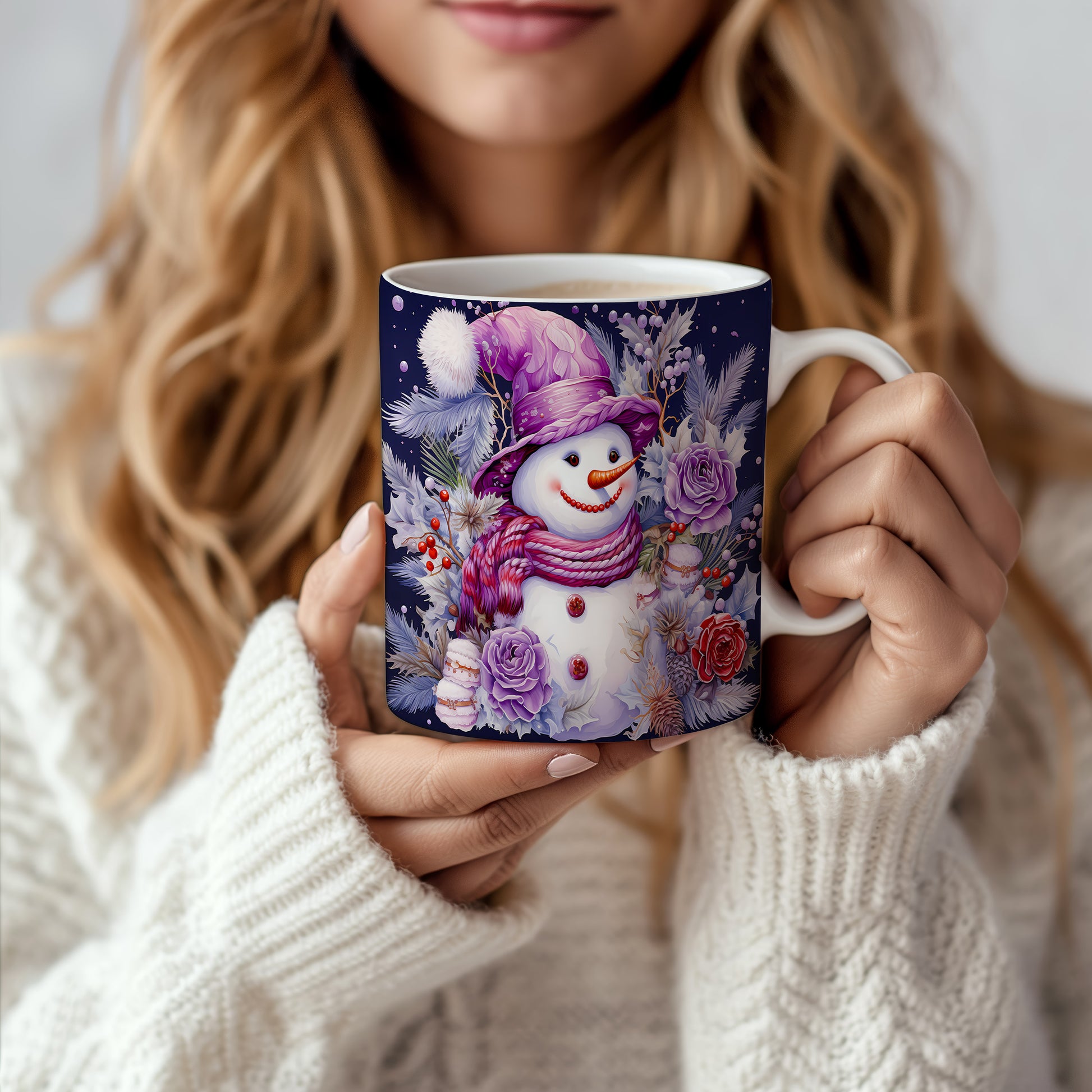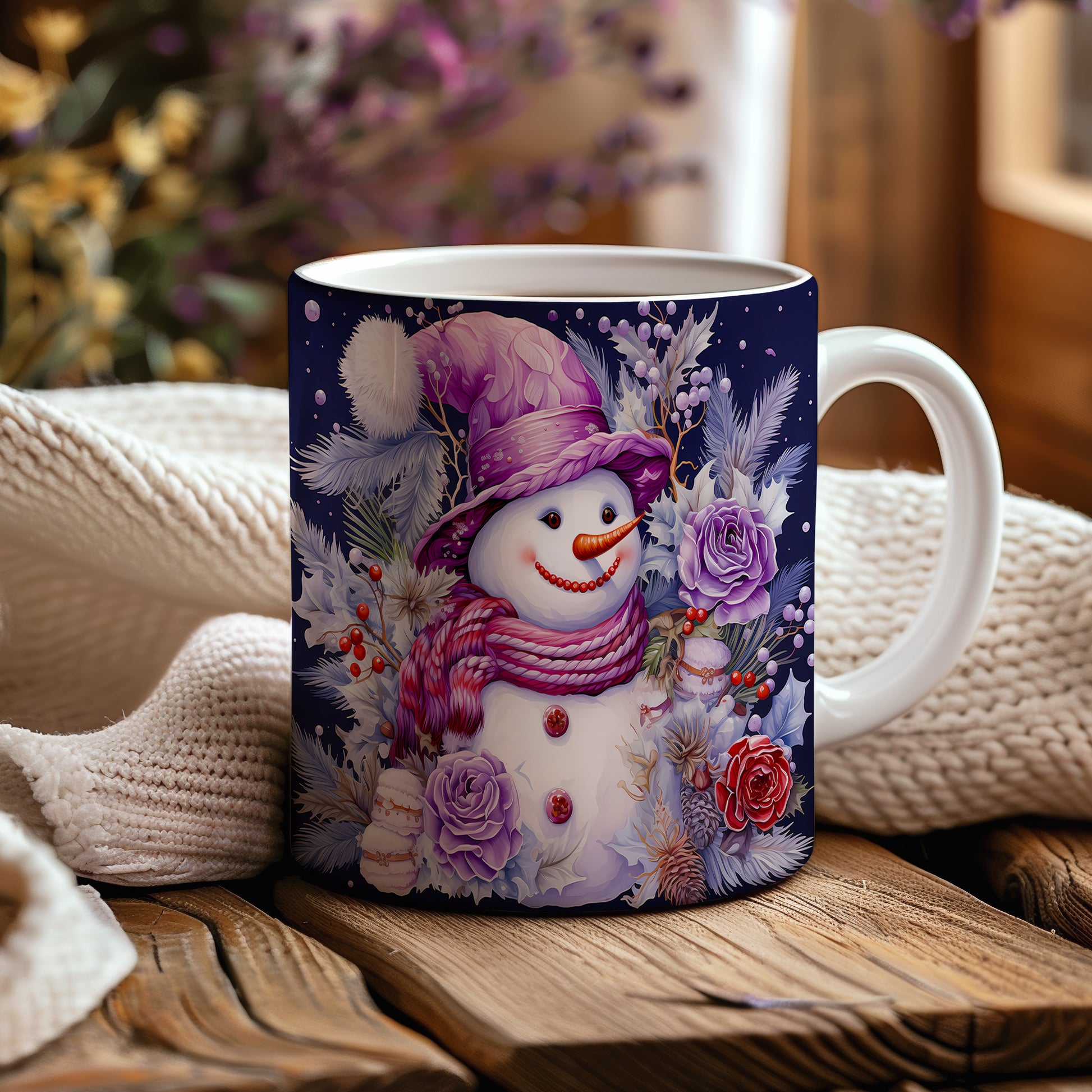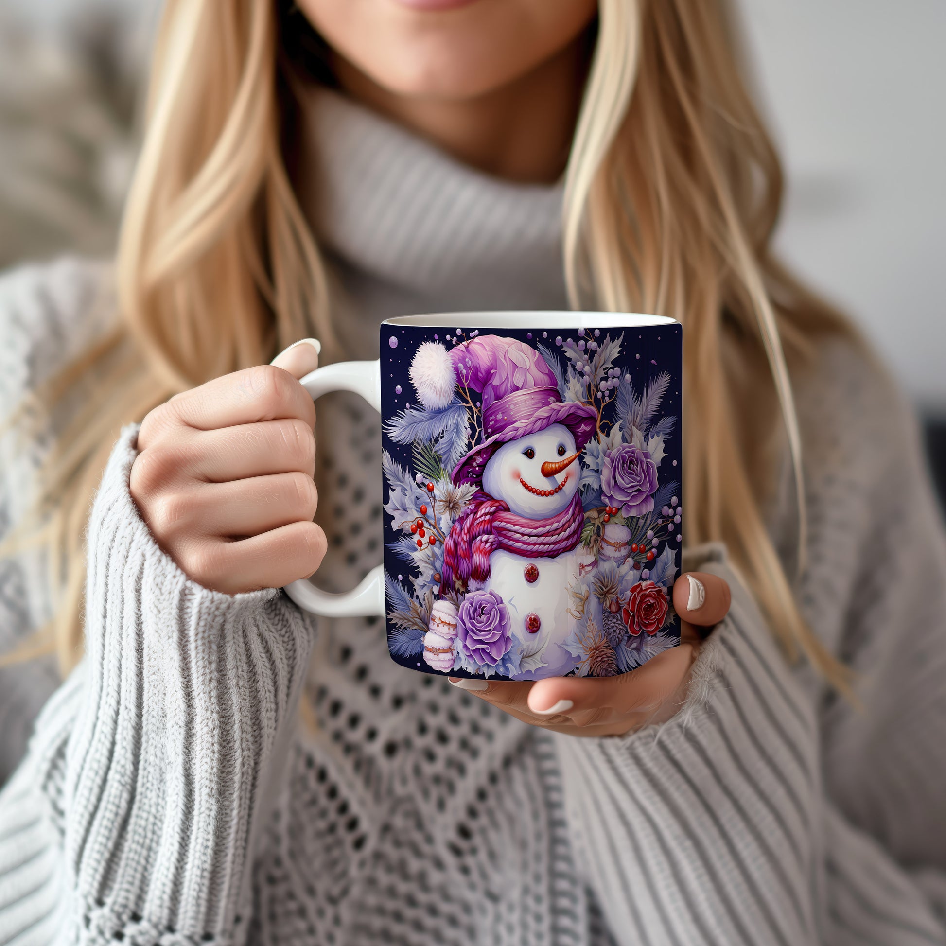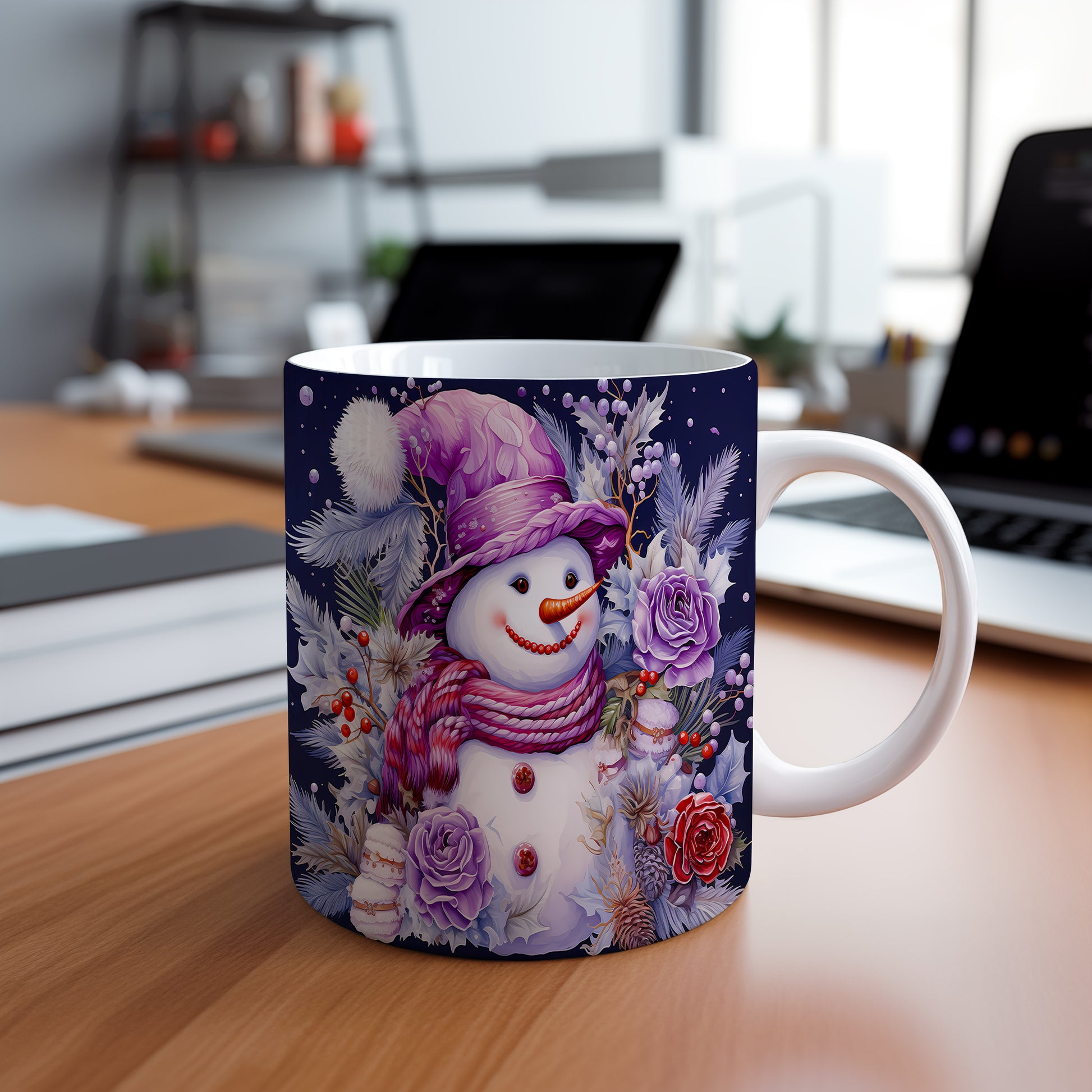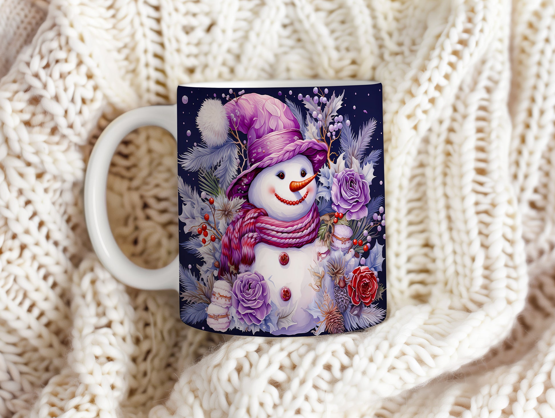 Vánoční hrnek se sněhulákem a šálou – klasická edice