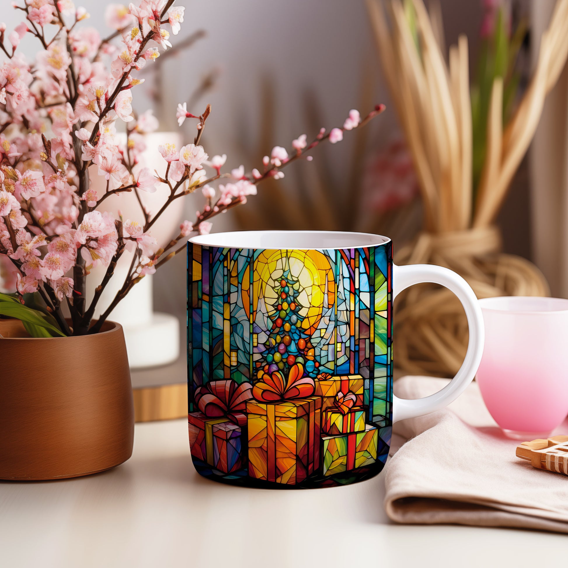 Vánoční hrnek se stromkem a dárky