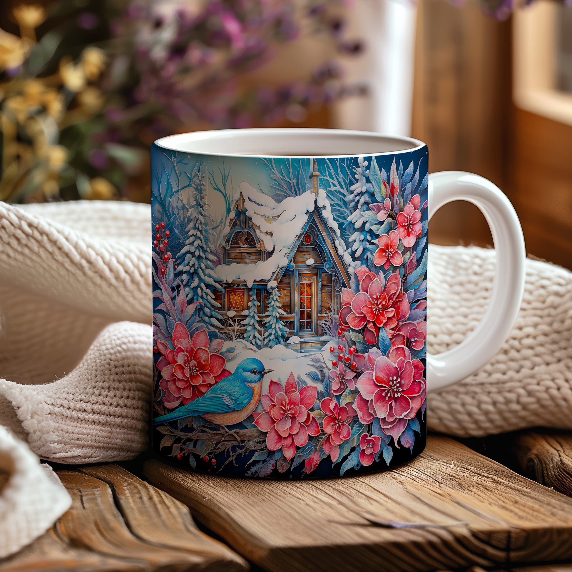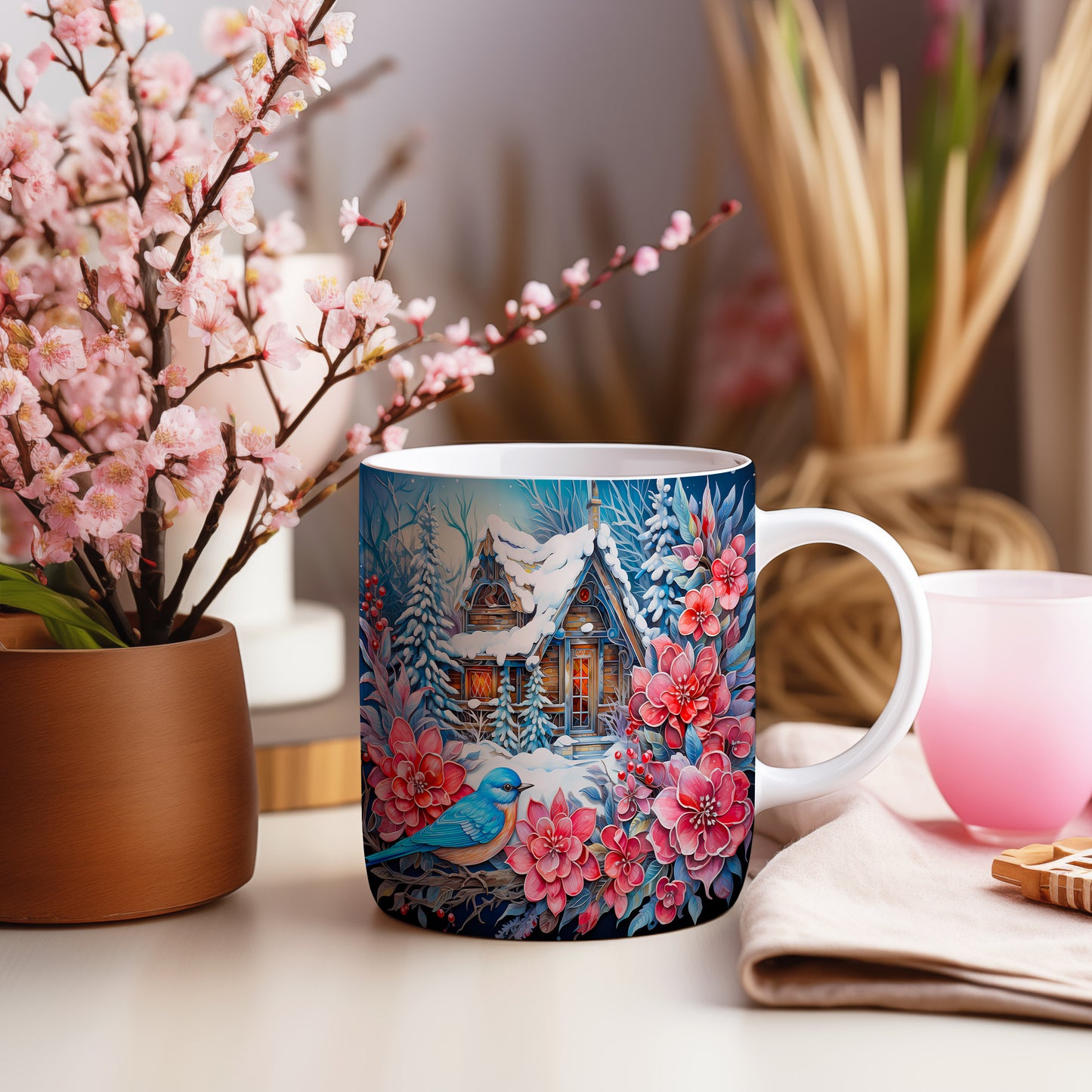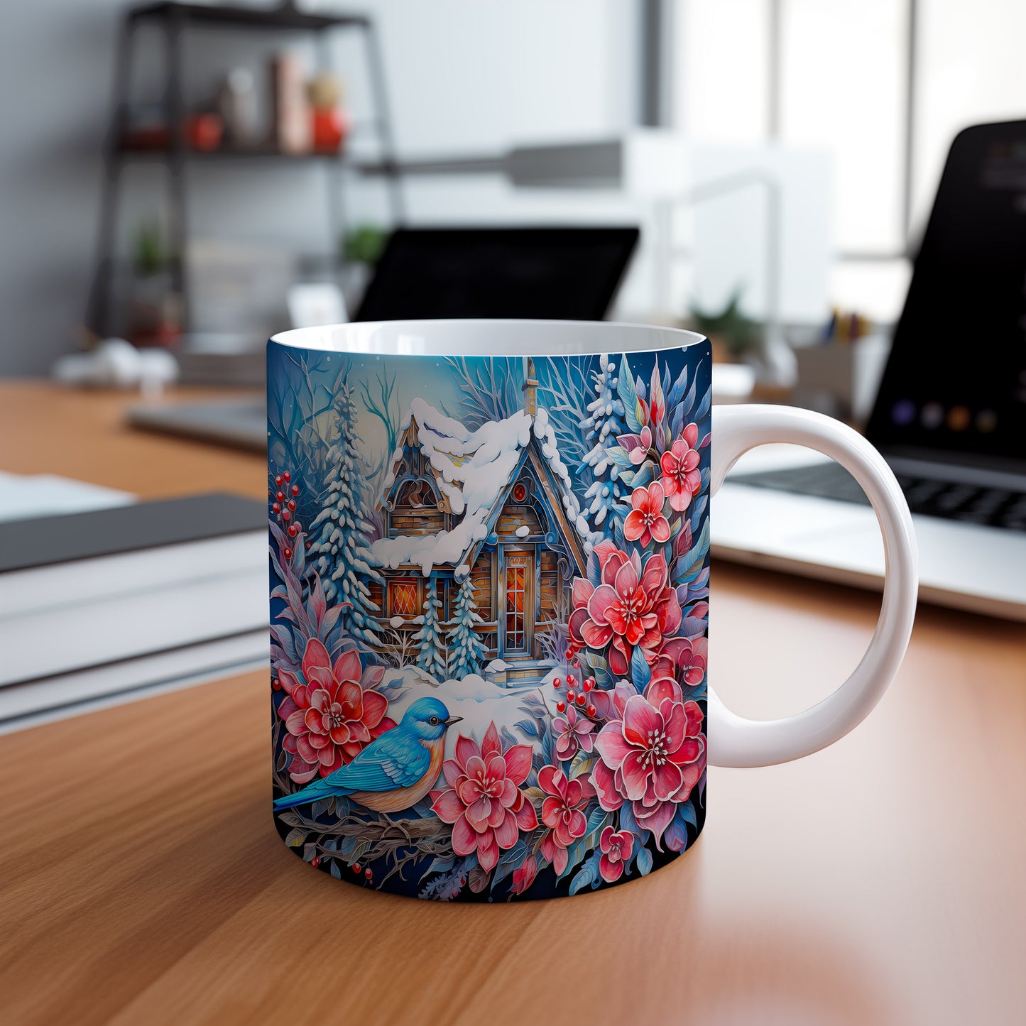 Vánoční hrnek se zimní chaloupkou – snový motiv