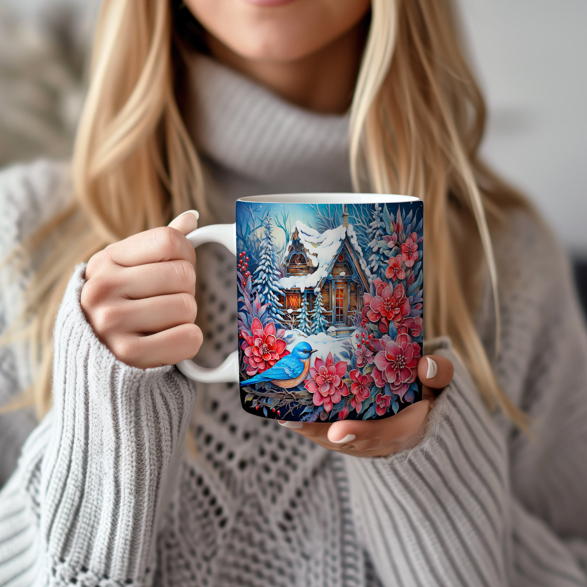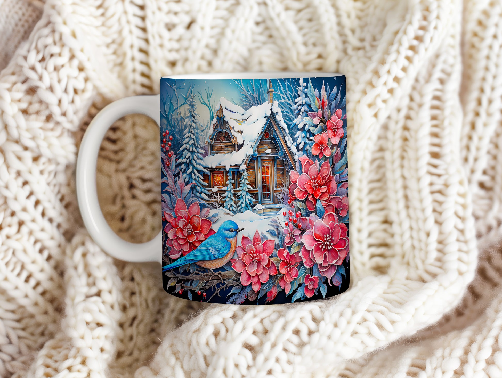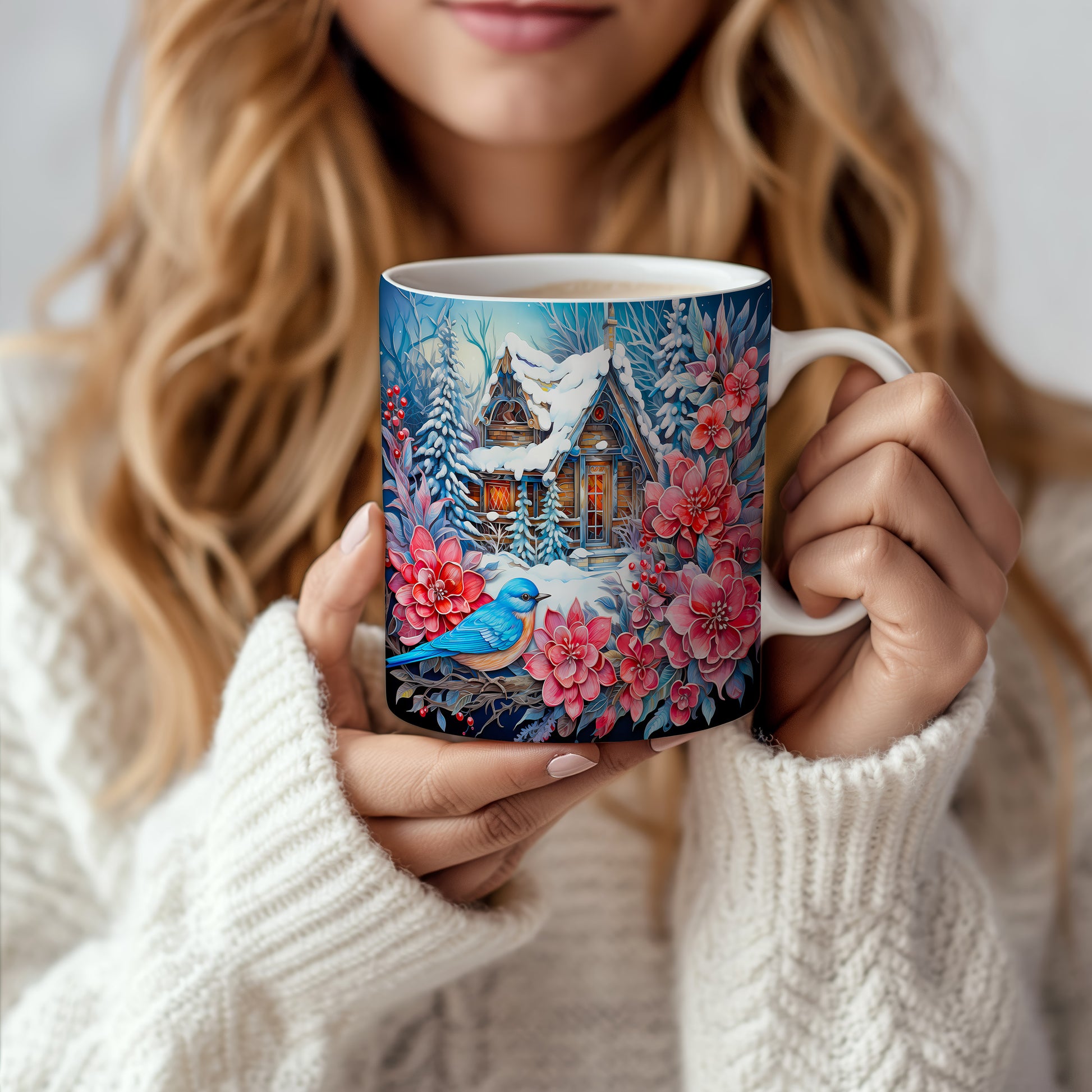 Vánoční hrnek se zimní chaloupkou – snový motiv