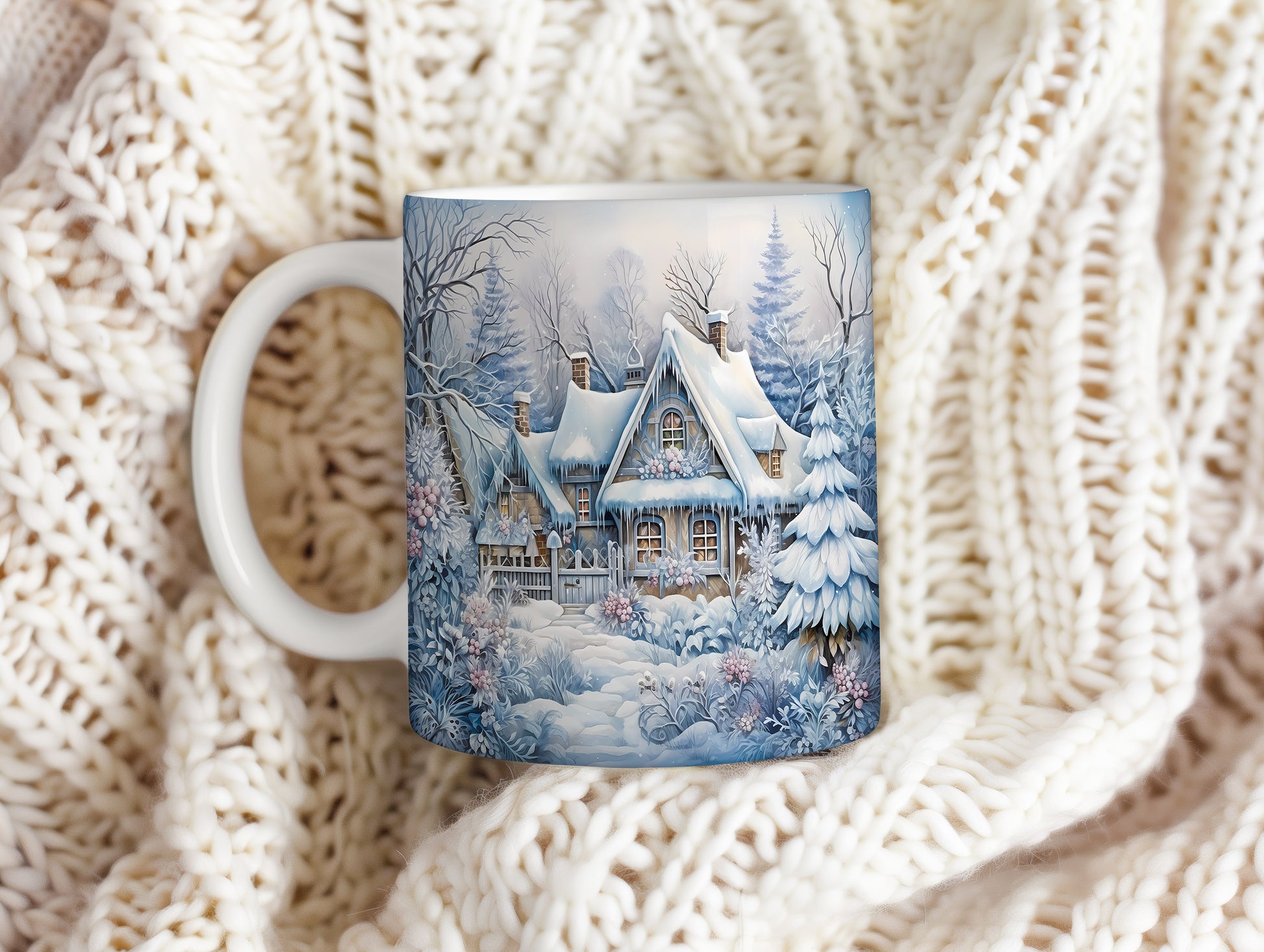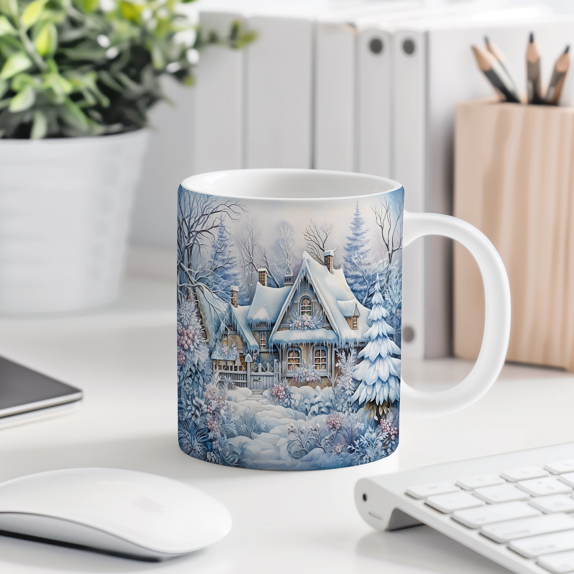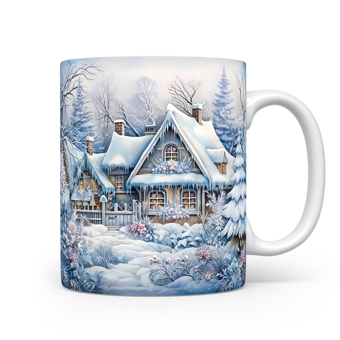 Vánoční hrnek se zimní chaloupkou – elegantní motiv