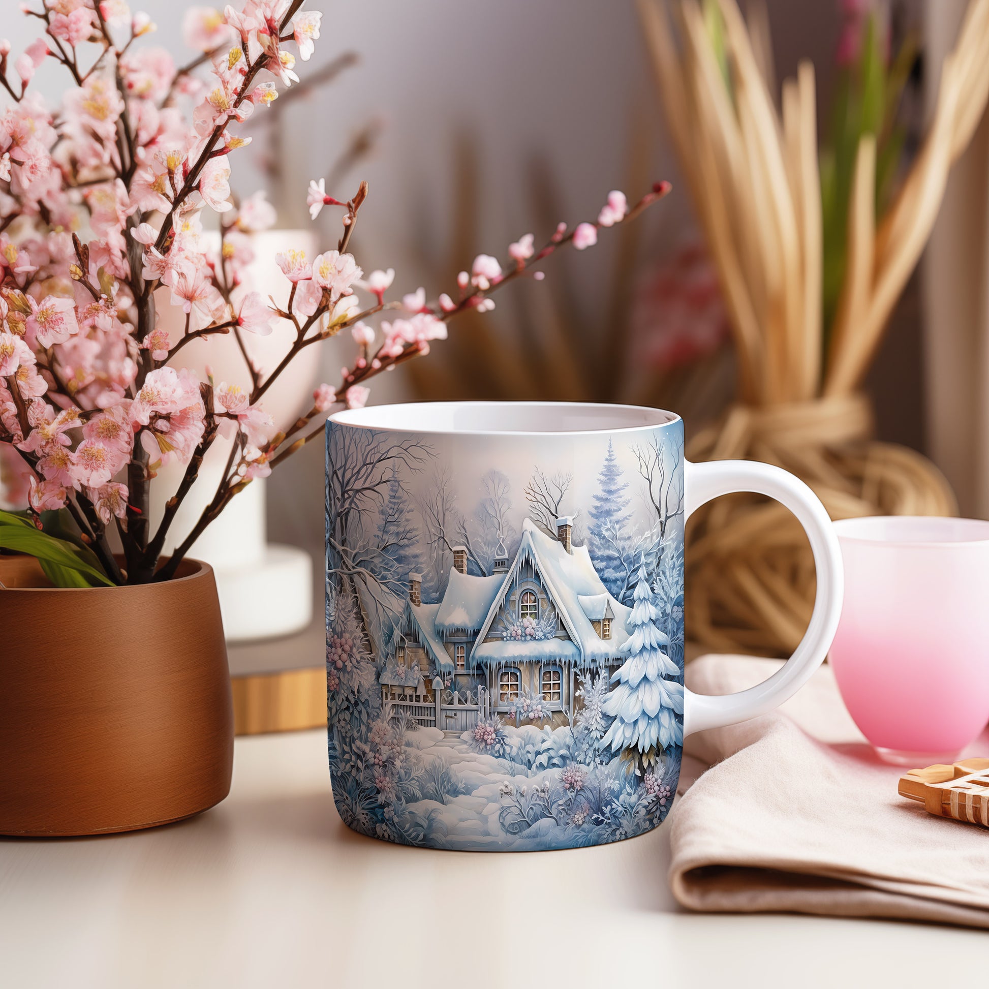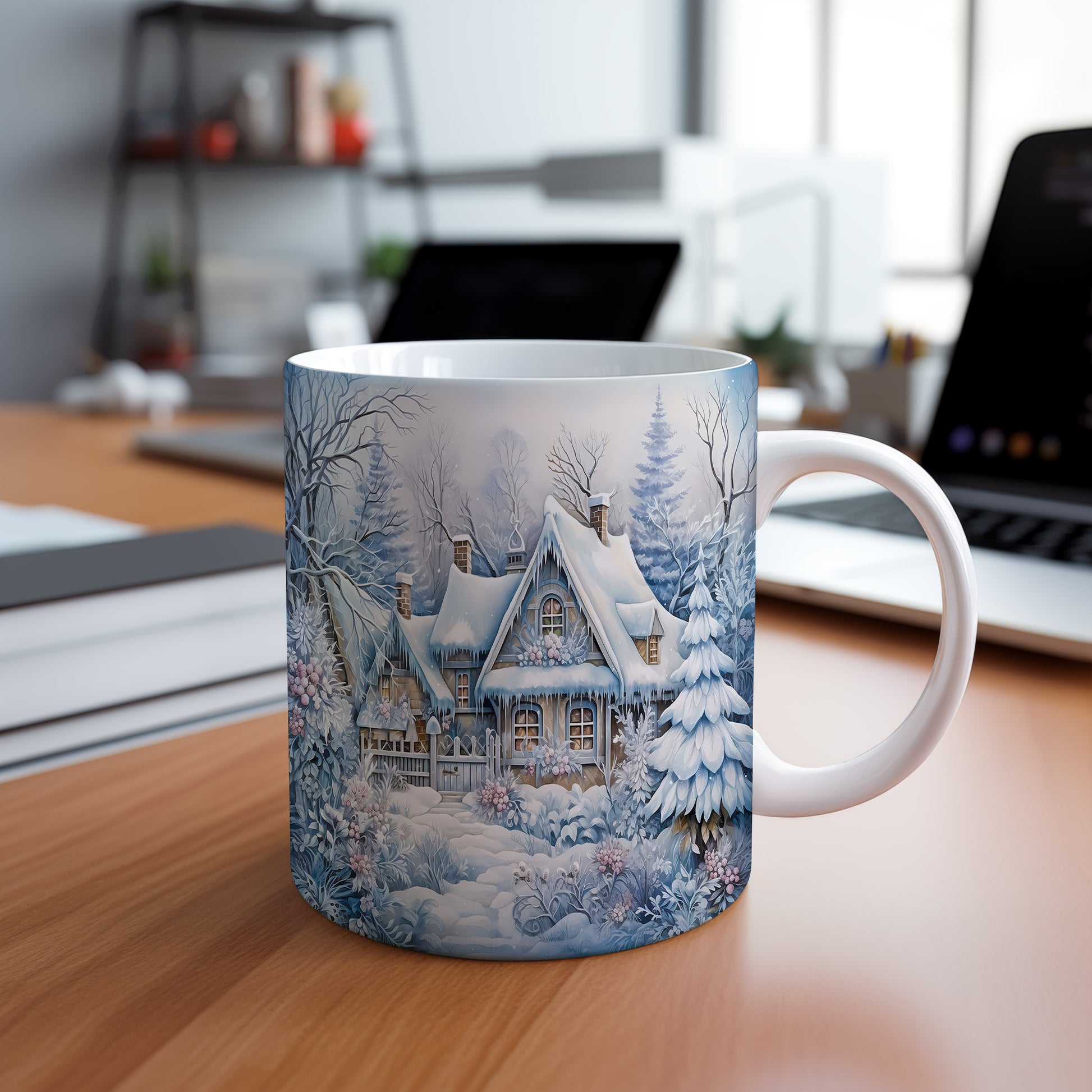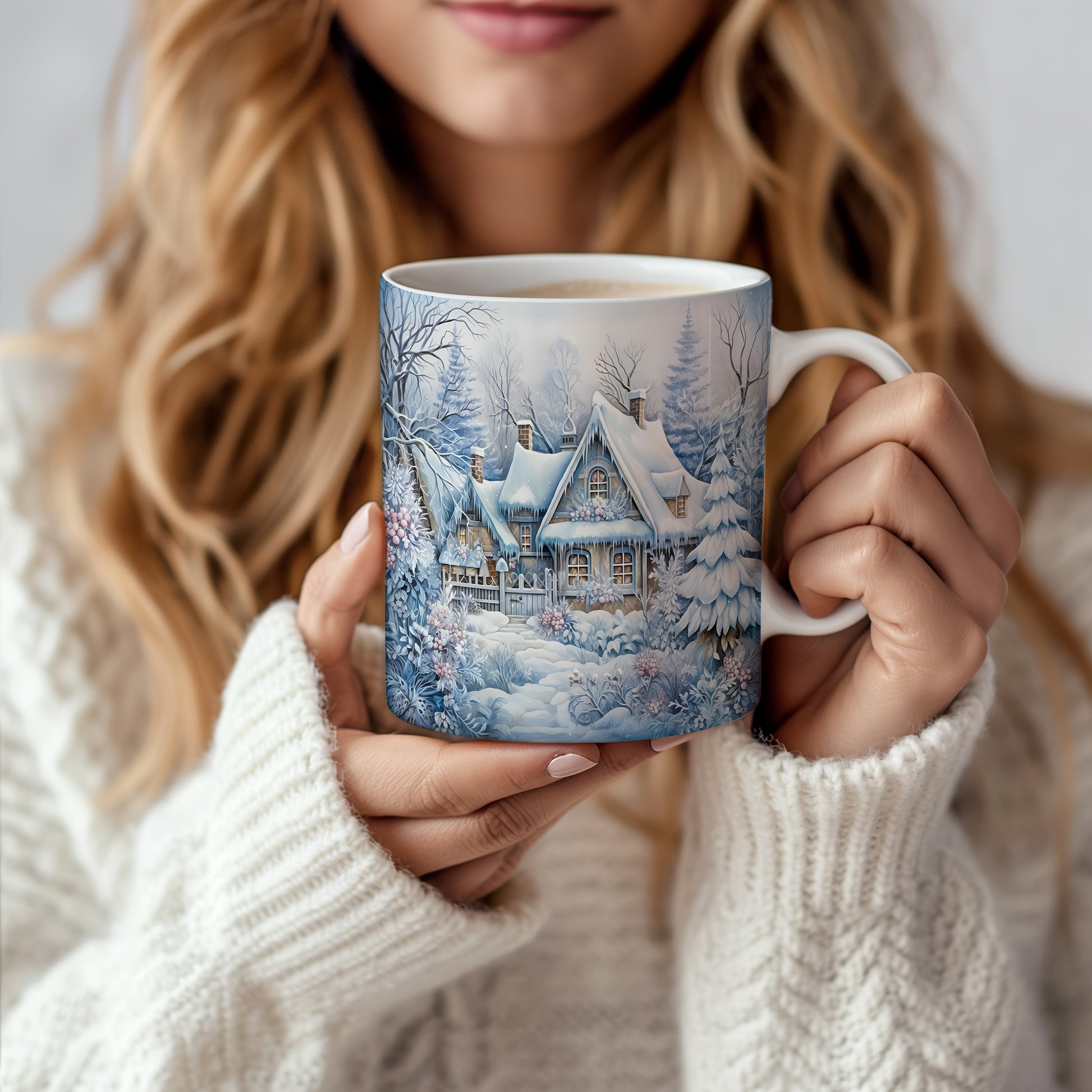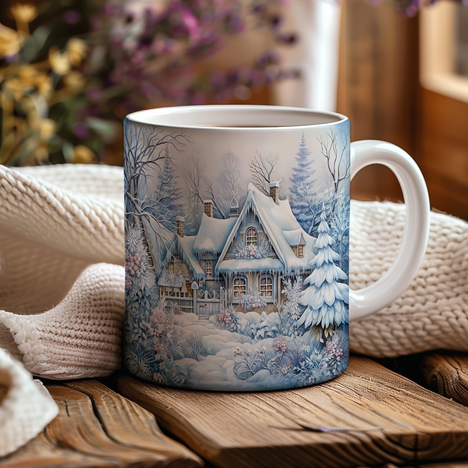 Vánoční hrnek se zimní chaloupkou – elegantní motiv