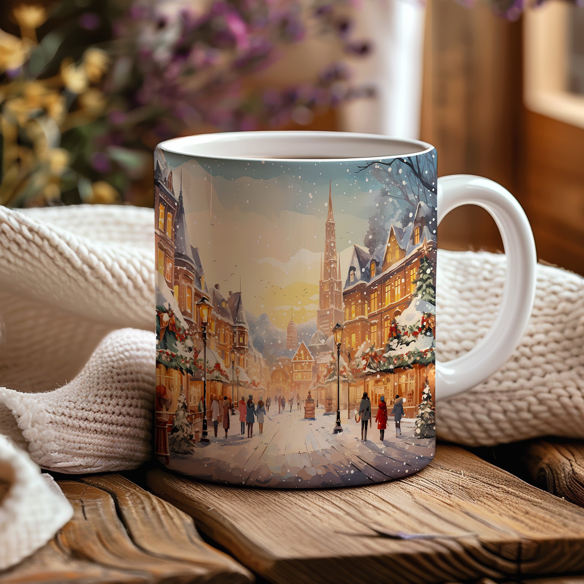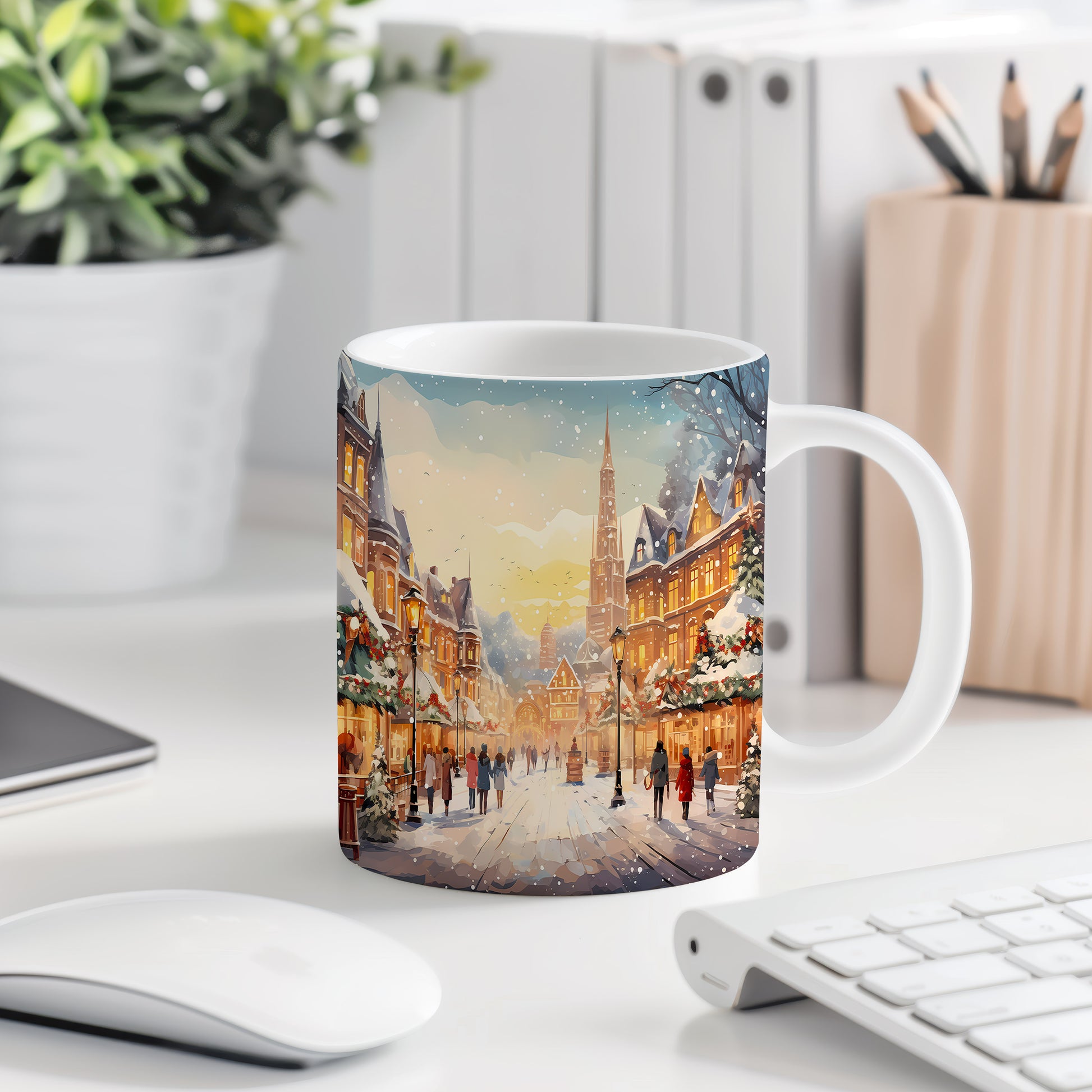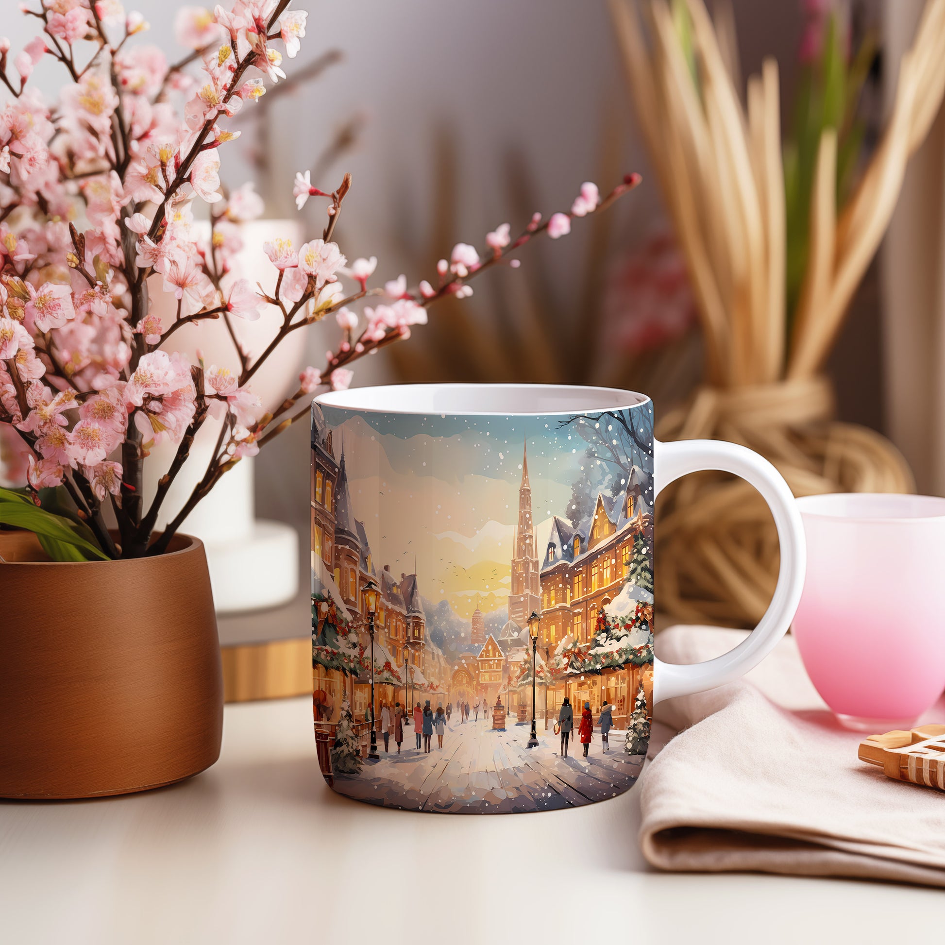Vánoční hrnek se zimními vesnicemi